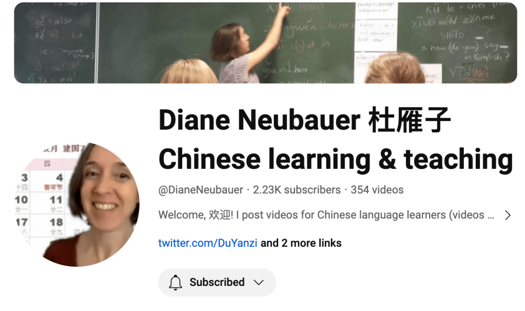 Diane Neubauer is a Mandarin instructor and applied linguist who also raises chickens. Her YouTube channel is full of resources for her novice and intermediate Mandarin learners. Here are some of her series: